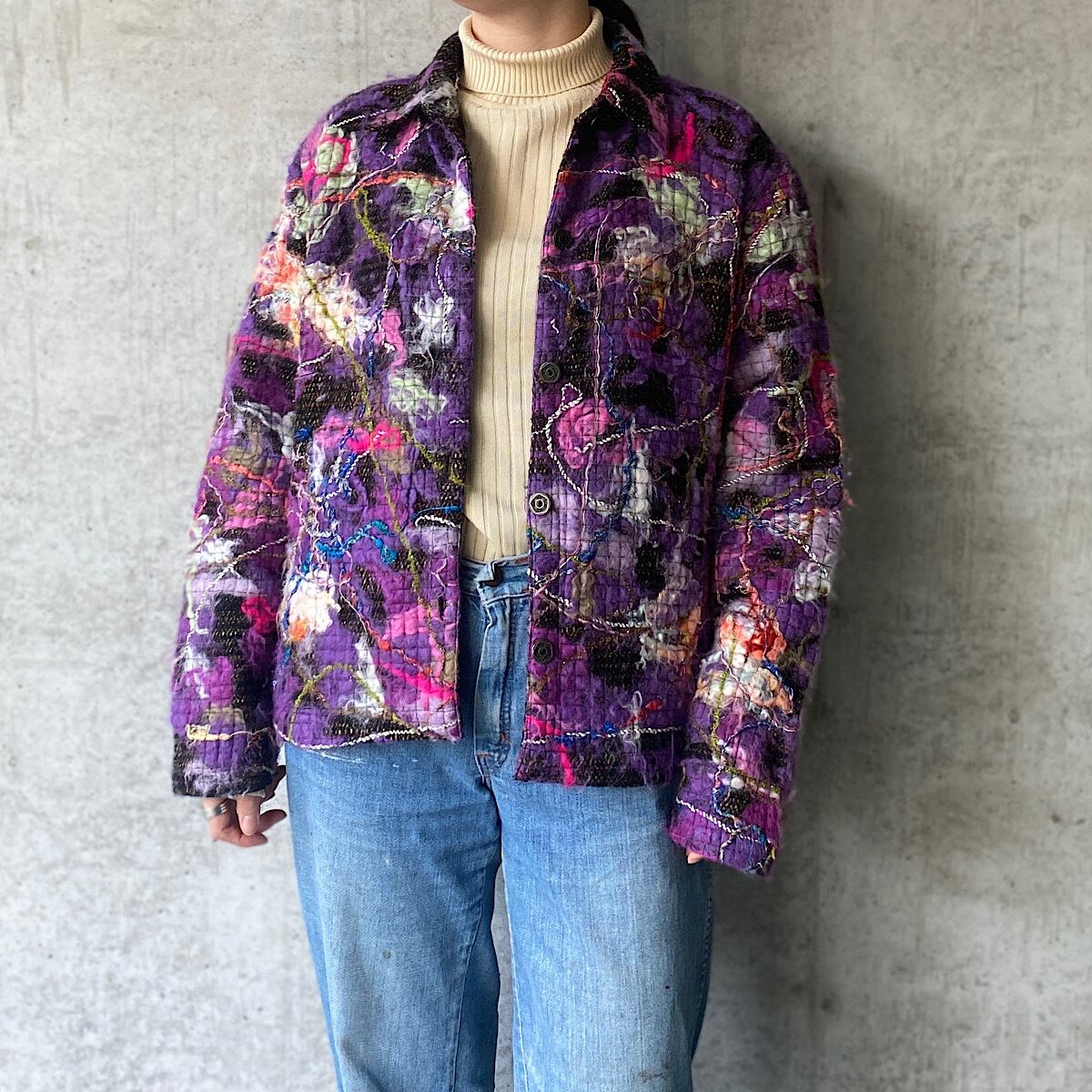 さまざまなカラーの糸をあしらった個性的なジャケット。